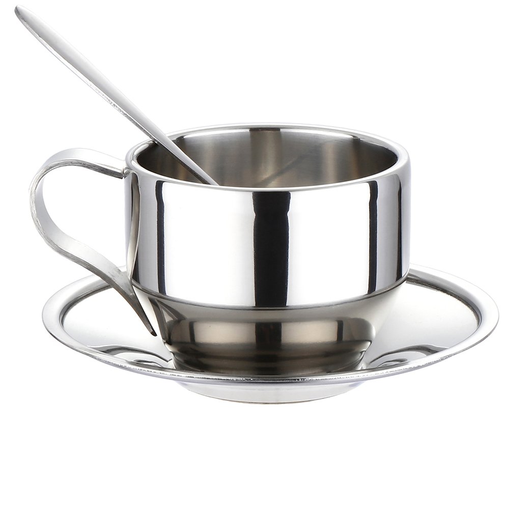 Coffee Cup Set, Stainless Steel Double Walled Insulated Coffee Mug Espresso Latte Cappuccino Milk Cup with Saucer & Spoon.