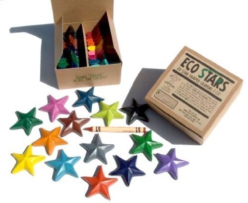 20 Star Shaped, Eco Friendly Solid Color Crayons, Non Toxic and Made of 100% Recycled and Recyclable Crayons, Made in the USA.