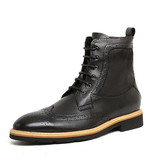 Men’s, Genuine Leather Autumn and Winter Bullock Leather Carved High Top Martin Boot, in Black.