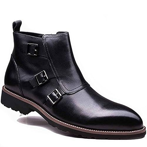 Genuine Leather, Men’s Monk Strap Boots Formal Business Chelsea Shoes.