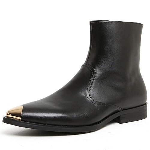 Designer, Men’s Genuine Leather Metal Pointed Toe Boots, Minimalist Design, in Black.
