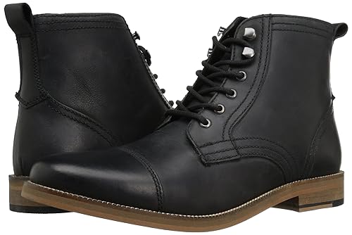 Another terrific option for a modern, casual genuine leather men’s boot. The exterior material is made out of breathable leather, while the insole is full memory foam for added comfort. This boot strikes a solid balance between form and function. In our opinion, definitely one of top black leather boots for men in this collection considering the price.