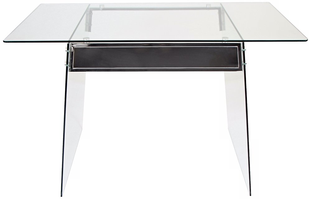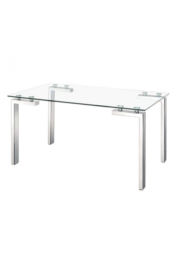 Minimalist Design, Glacier Desk with Clear Tempered Glass Frame, Stainless steel Accents and Chrome Finish.