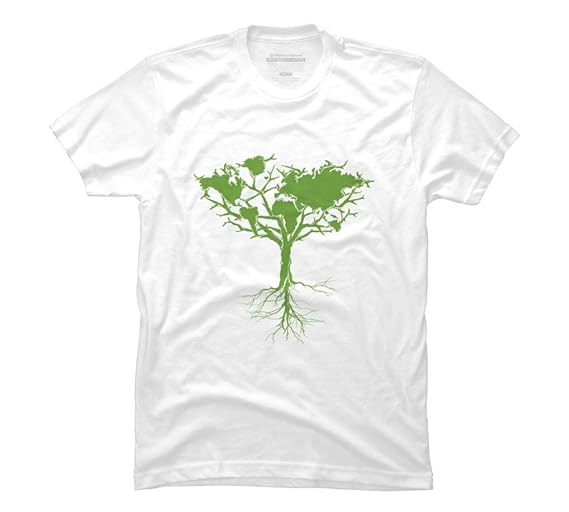 Earth Tree, Men’s Graphic T Shirt, Made with Eco Friendly Inks, in White and Green.