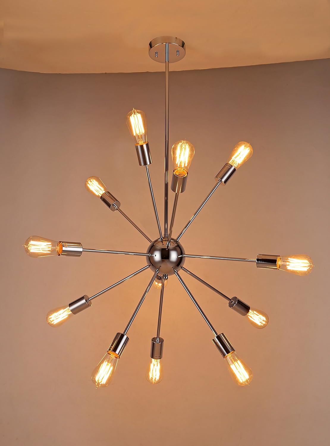Modern, Minimalist Design 12 Lights Satellite Style Sputnik Chandelier, with Chrome Finish Industrial Aesthetic and Edison Style Bulbs.